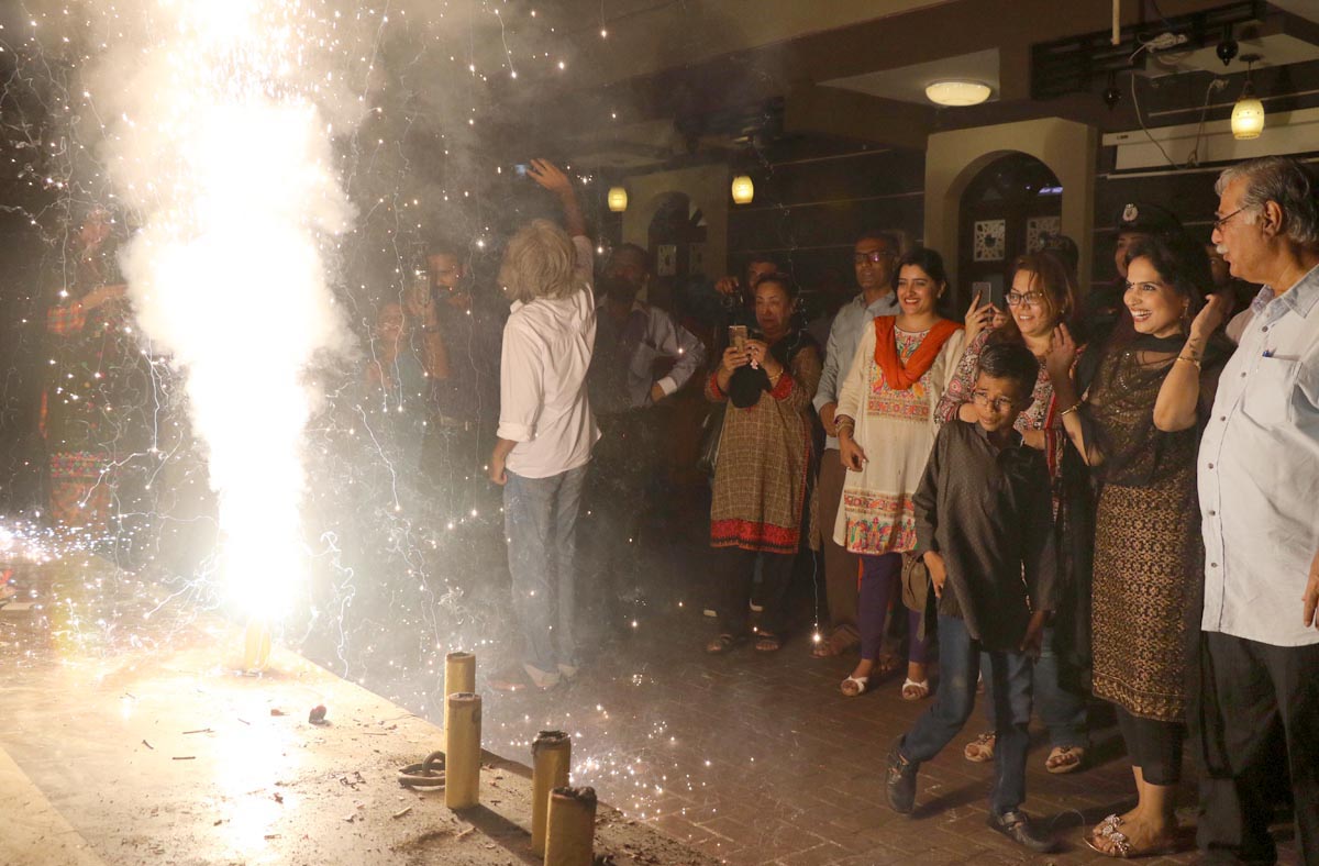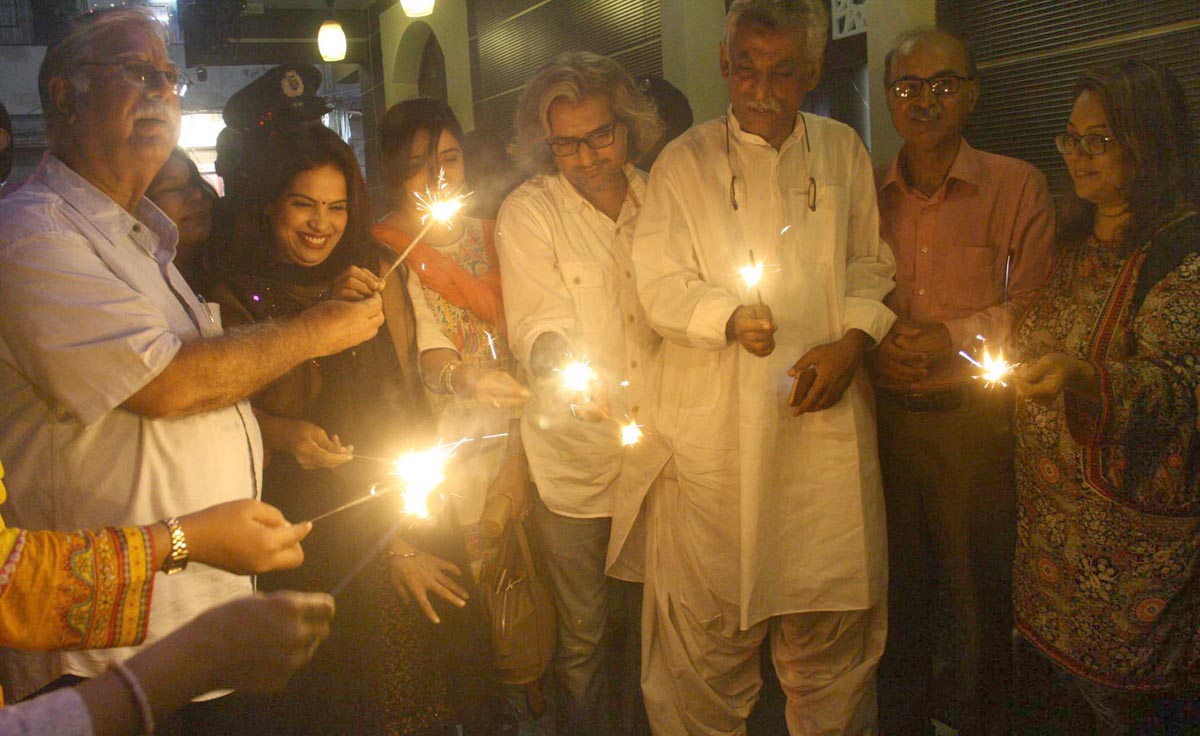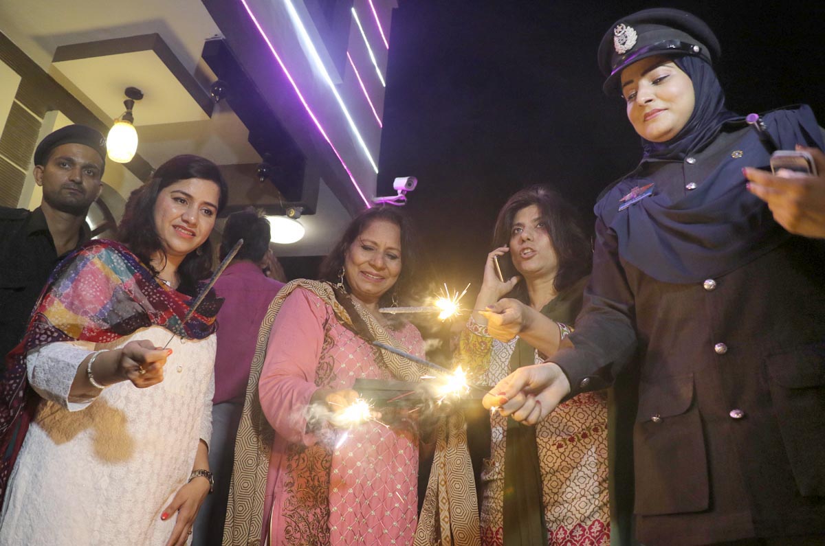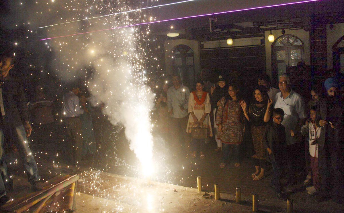 Members of Hindu community are lighting sparklers in Karachi. Photo: OINN