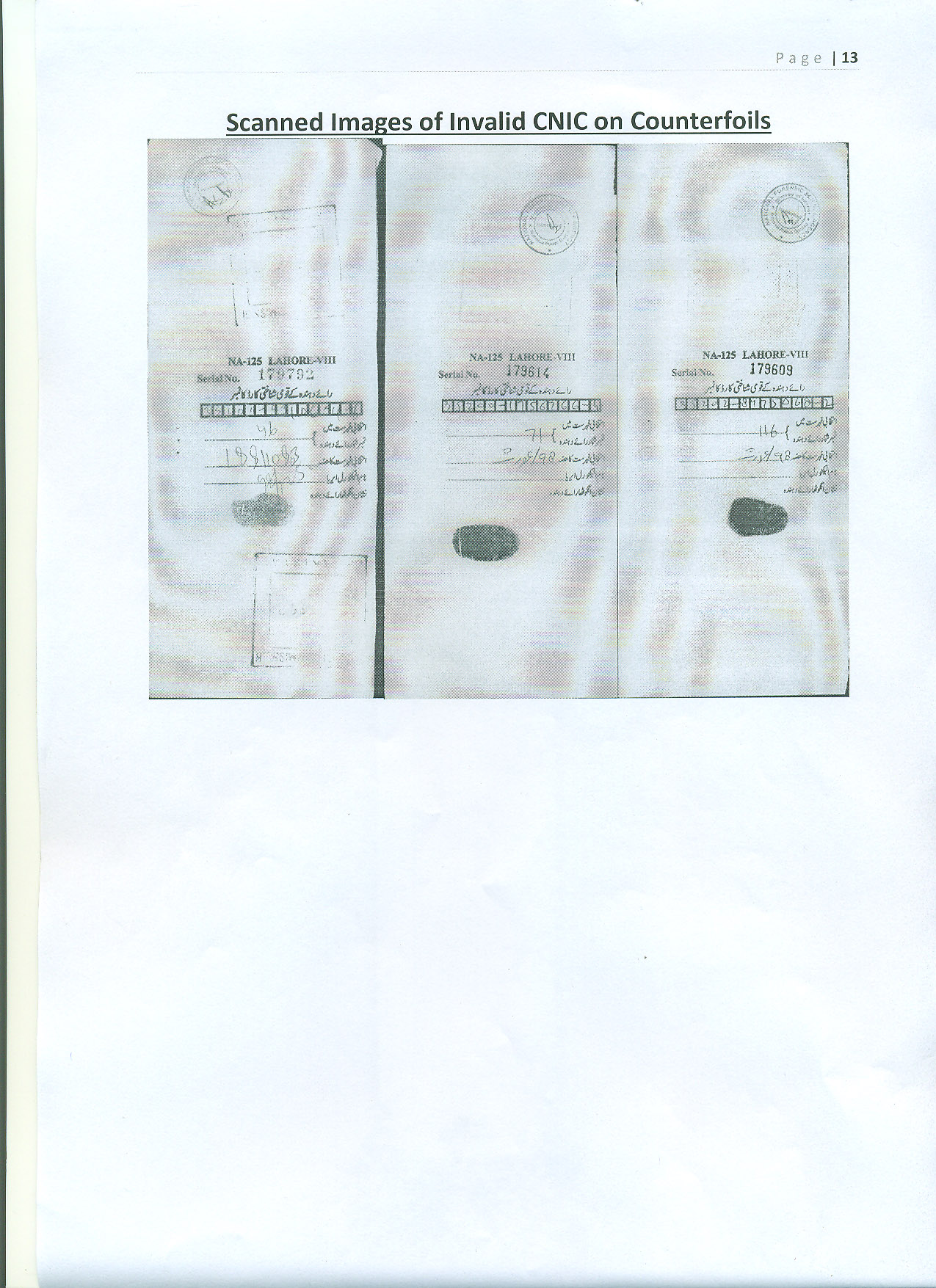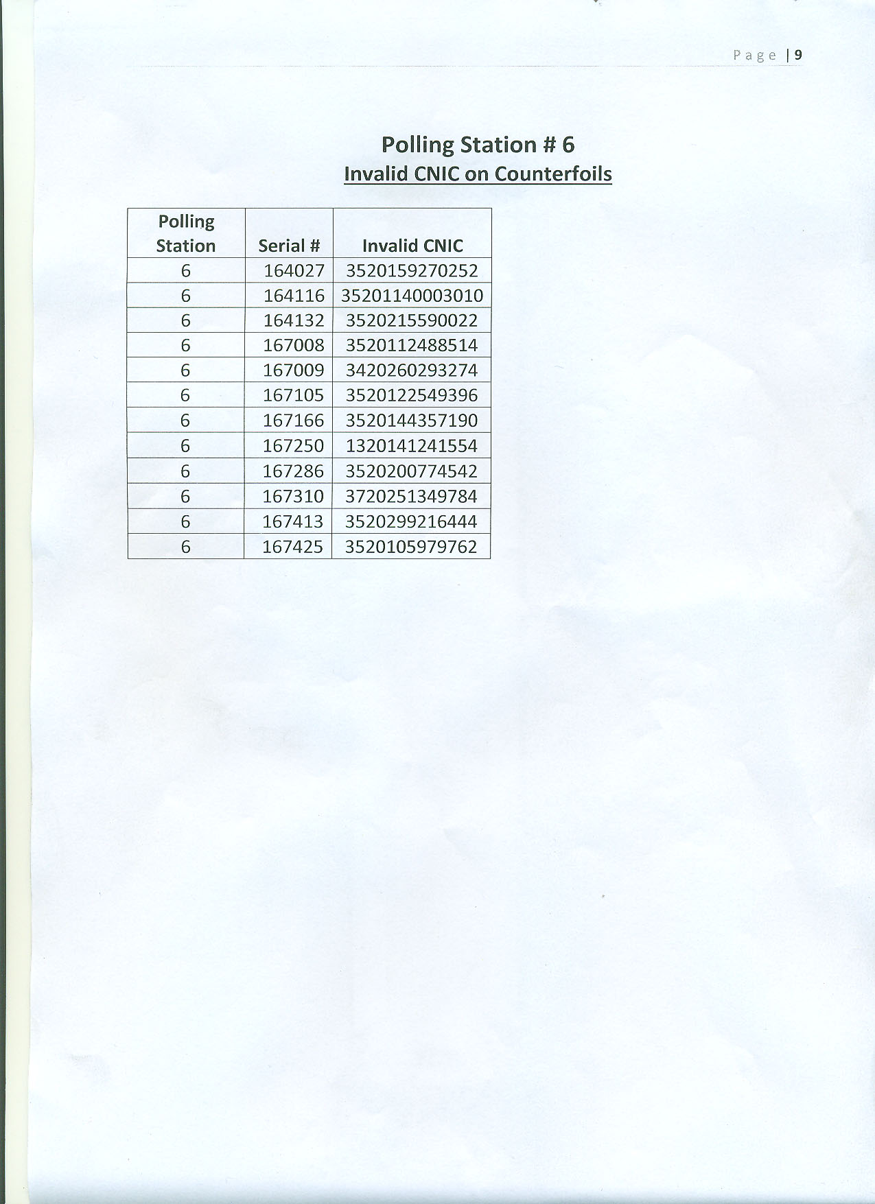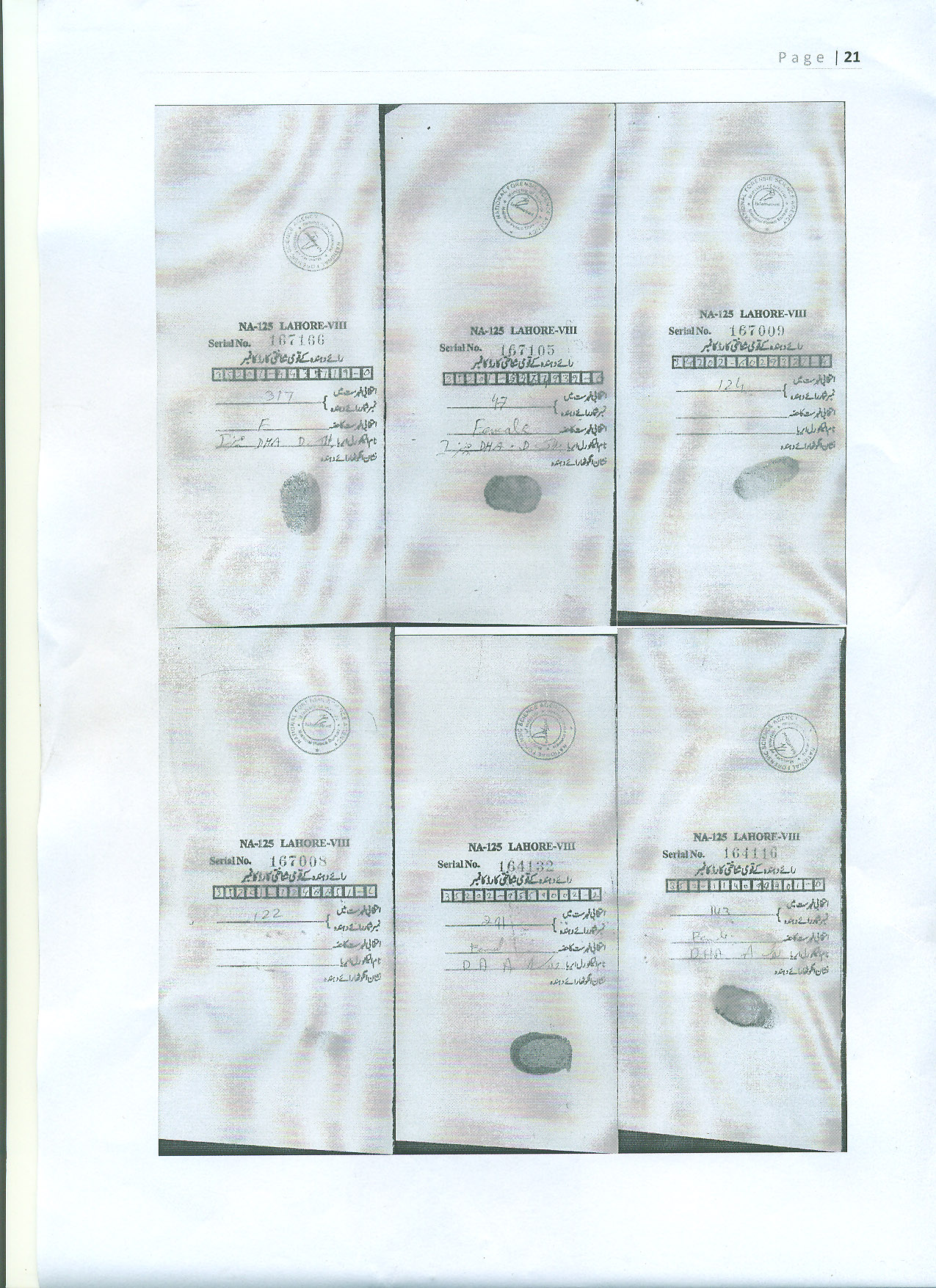 6 votes were cast by each individual at PS-6 of NA-125, Dunya News reported. The five polling stations that were checked by NADRA included PS-110, PS-107, PS-98, PS-6 and PS-5. Thumb-impressions of several of the voters at these five polling stations could not be verified.