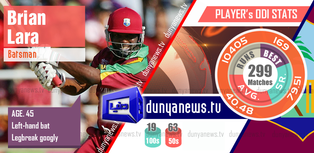 Brian Lara featured in 34 World Cup matches from 1992 to 2007 and scored 1225 runs in 33 innings at an average of 42.24.