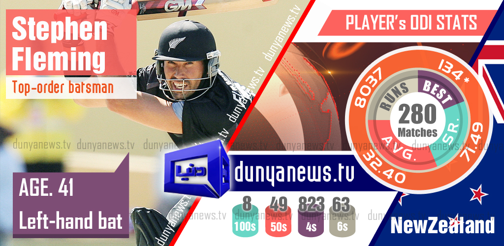 Stephen Fleming, left-handed stylish Kiwi batsman, was one of the most elegant batsmen to have played for New Zealand. He played 280 matches for New Zealand and scored 8037 runs at an average of 32.40 and strike rate of 71.49 with the help of 8 centuries and 49 half-centuries.