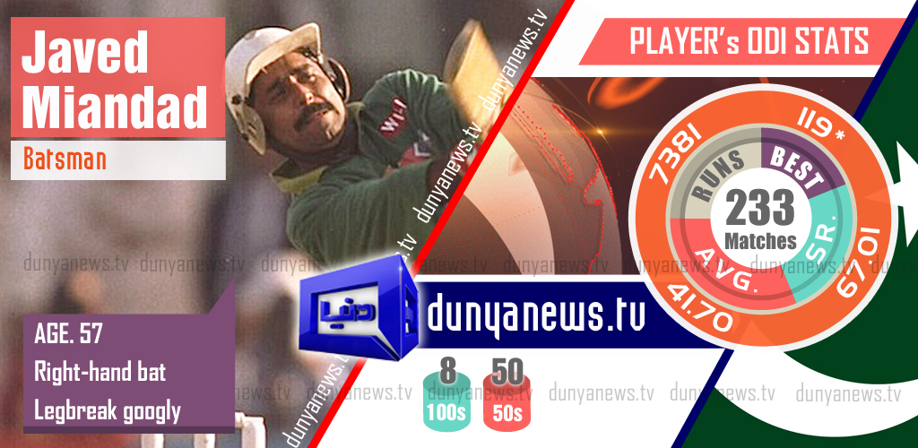 Miandad played 33 world cup matches and scored 1075 runs at an average of 43.32 with the help of 1 century and 8 half-centuries.