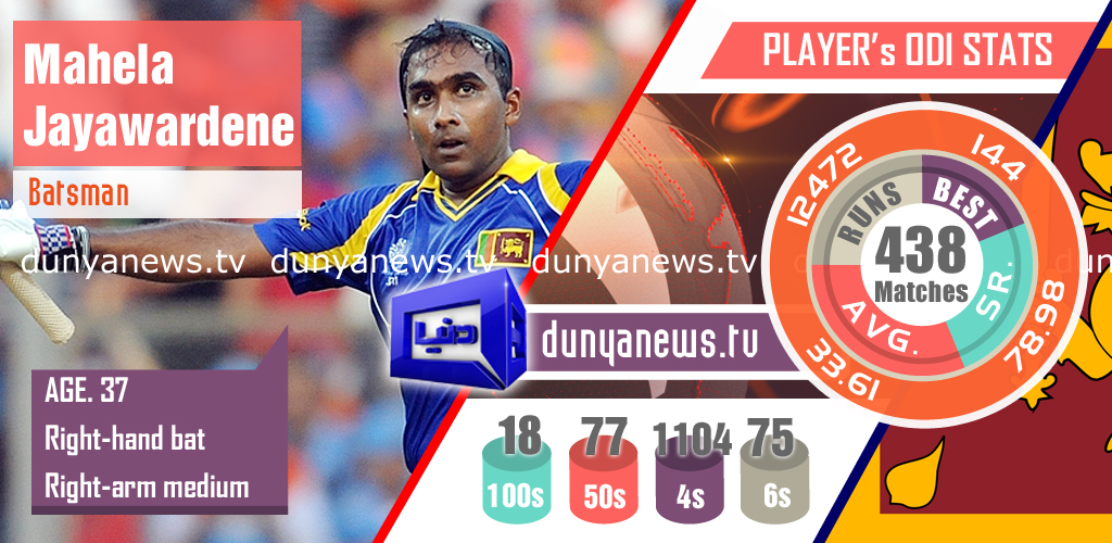 Mahela Jayawardene is a right Sri Lankan batsman who has featured in more than 400 ODIs in a career spanning 18 years. In those ODIs , he has made 12472 runs with 18 centuries and 77 half centuries. He has an average of 33.61 and the number of boundaries he has scored are 1104 while the sixes stand at a figure of 75. He was the captain of the Sri Lankan squad in the 2007 World Cup where he led them to the finals. This is his last World Cup in the blue outfit.