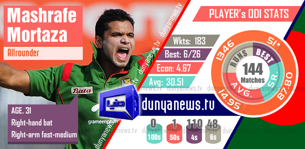 Mashrafe Bin Mortaza is a right arm fast medium bowler who plays for Bangladesh. He is the current skipper of Bangladesh ODI team who is in charge of the Bangladeshi camp when it lands Down Under for its World Cup. Mortaza was the first genuine fast bowler from Bangladesh since it was inducted into the test teams in 2000. Injuries have hampered his career and his pace has dropped a notch but he was the part of the playing 11 when it dismantled India in the ICC World Cup 2007. He has 183 ODI wickets to his name at an average of 30.51. He will be Bangladesh’s frontline bowler when he hits the turf next month.