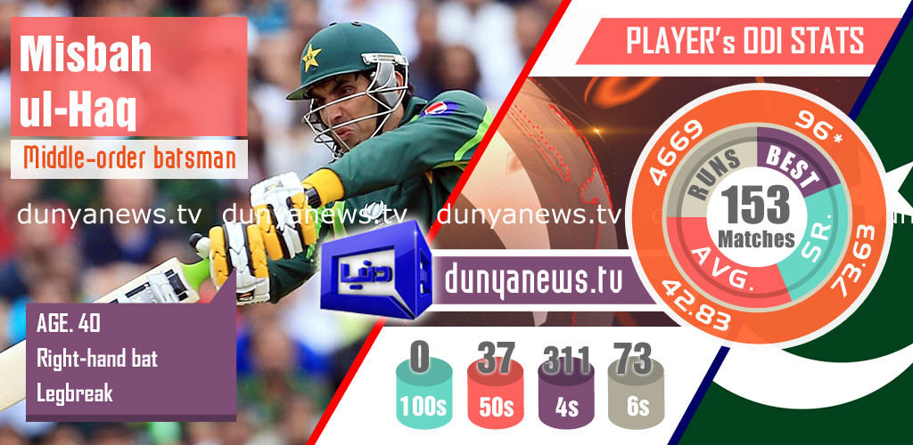 Misbah Ul Haq is the captain of the Pakistani ODI squad in this edition of World Cup. With 4669 runs in the One Day Internationals at an average of 42.83 , he is the core of the middle order batting of the Pakistani team. His unwavering temperament and his calm approach towards the game are the hallmarks of his career. He has been known to hit aggressively when required and has recently equaled the record of fastest century in a test. Having attained the age of 40 , this looks like the last World Cup edition for the experienced Pakistani skipper.