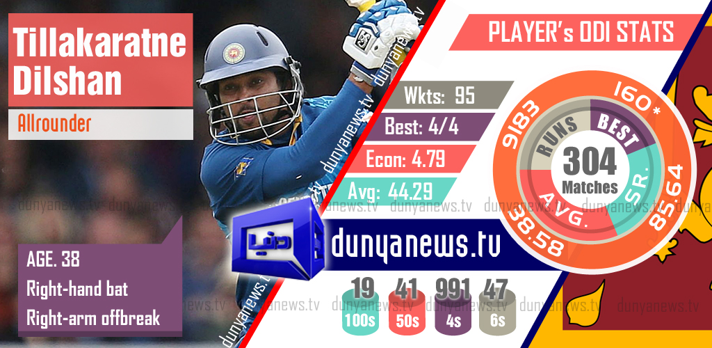 Tillakaratne Mudiyanselage Dilshan is an all rounder from Sri Lanka. His usually opens the batting for his side and is a destructive batsman when in form. His 9183 runs at a strike rate of 85.64 are a witness to the fact. He has made 19 centuries and 41 half centuries in his career. His bowling is an additional component of his game where he has taken 95 wickets in the 50 overs format. Add to that , fierce fielding in the outfields and a backup wicket keeper when called to such a role and he is a gem of a player to have in the side.