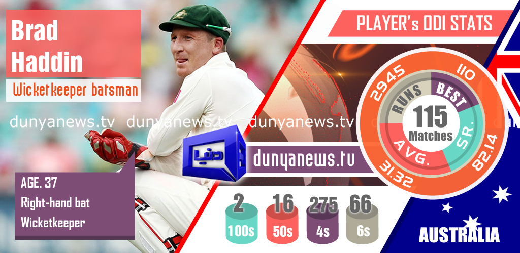 Brad Haddin is an Australian wicket keeper batsman of great competence. Making his ODI debut back in 2001 , he became a permanent fixture of the team when his predecessor, Gilchrist retired and he rose to prominence ever since for his performances. A batsman of aggressive mentality and a sound technique , he has raked nearly 3000 runs at a strike rate of more than 80. He has 2 centuries and 16 half centuries to his name. World Cup 2015 is set to be his last appearance at the big stage.