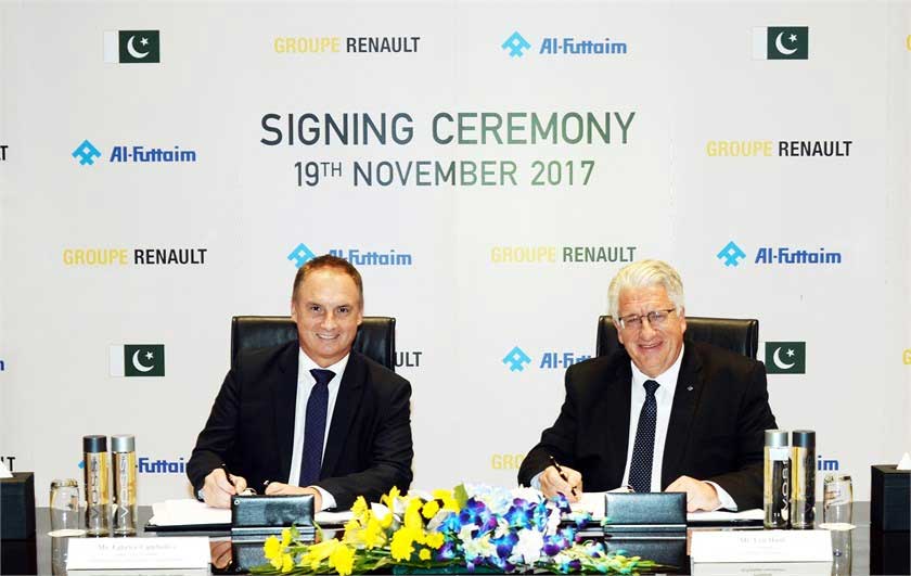 (Web Desk) - Groupe Renault and Al-Futtaim today (Monday) announced that they have signed definitive agreements for the exclusive assembly and distribution of Renault vehicles in Pakistan.
