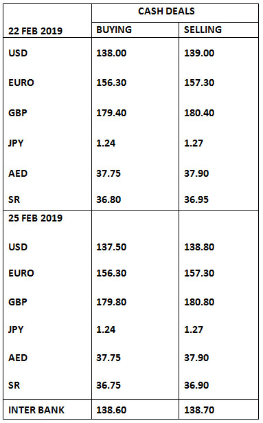The price of 1 USD to PKR buying is Rs137.50 and selling of US Dollar is Rs138.80. British Pound (GBP) to PKR buying is Rs179.80 and selling is Rs180.80. Euro to PKR buying is Rs156.30 and selling is Rs157.30.