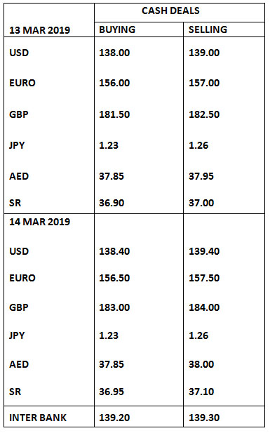The price of 1 USD to PKR buying is Rs138.40 and selling of US Dollar is Rs139.40. British Pound (GBP) to PKR buying is Rs183.00 and selling is Rs184.00. Euro to PKR buying is Rs156.50 and selling is Rs157.50.