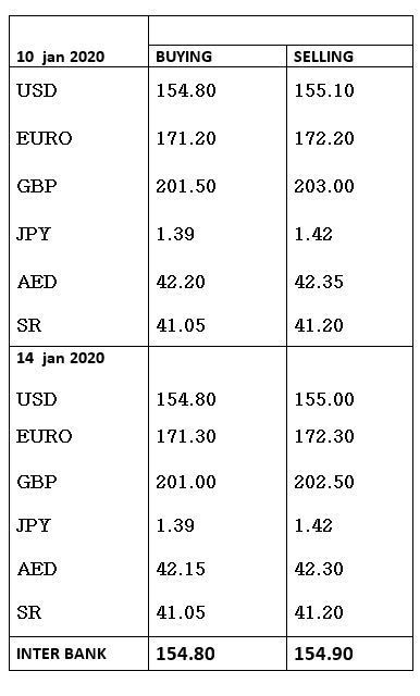 The price of 1 USD to PKR buying is Rs154.80 and selling of US Dollar is Rs155.00. British Pound (GBP) to PKR buying is Rs201.00 and selling is Rs202.50. Euro to PKR buying is Rs171.30 and selling is Rs172.30.
