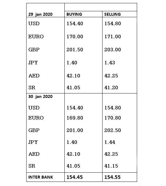 Currency rates in Pakistan - 30 January 2020