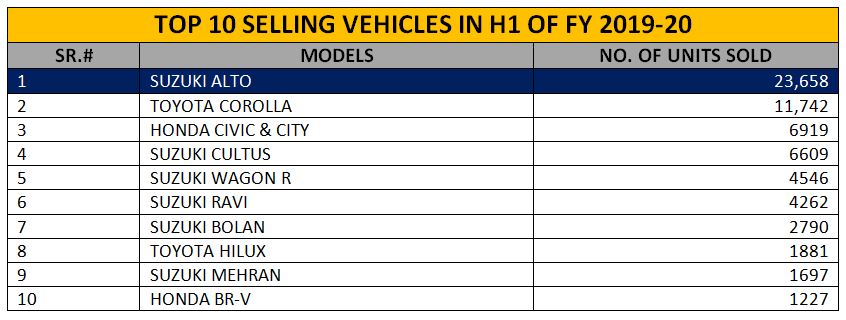 Top 10 cars sold in FY 2019-20 in Pakistan