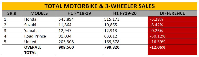 Under such circumstances of increasing prices of automotive products, the company has remained good in sales numbers. It sold 515,173 units in this period as compared to 543,894 units in the same period last year. It was followed by United motorbikes with 169,578 units being sold in July-December 2019 period. Its sales declined by nearly 17% while that of Road Prince went down by 30%. As many as 63,612 motorbikes of Road Prince were sold in this period.