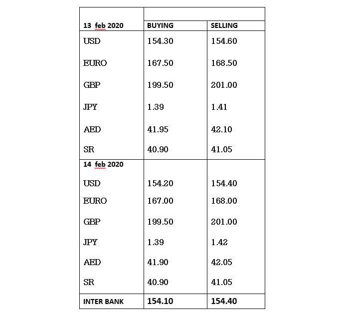 KARACHI (Dunya News) - Currency rates in open market in Pakistan according to international currencies as of 14 February 2020.