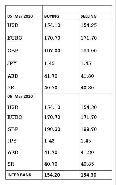 KARACHI (Dunya News) - Currency rates in open market in Pakistan according to international currencies as of 06 March 2020.