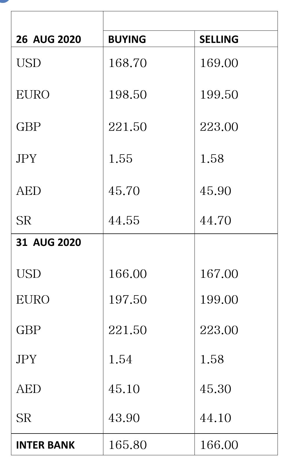 KARACHI (Dunya News) - Currency rates in open market in Pakistan according to international currencies as of 31 August 2020.