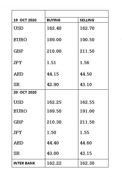 KARACHI (Dunya News) - Currency rates in open market in Pakistan according to international currencies as of 20 October 2020.