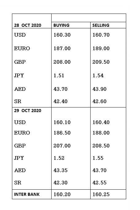 Currency rates in Pakistan - 29 October 2020