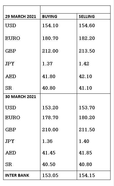 Currency rates in Pakistan - 30 March 2021