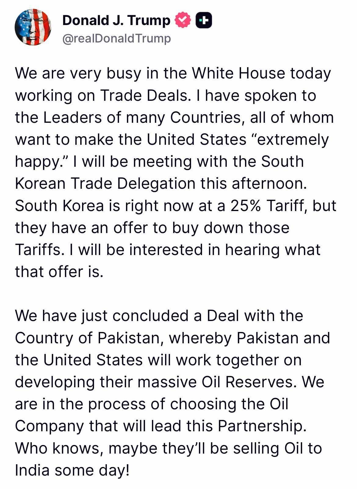 President Trump wrote on social media website X, formerly twitter, “We have just concluded a deal with the country of Pakistan, whereby Pakistan and the United States will work together on developing their massive oil reserves.