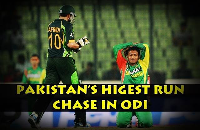 While chasing Bangladesh’s 326 runs target, Afridi came to bat and scored 59 runs off just 25 balls and took the game away from Bengalis. It was first time in Pakistan’s cricket history when Pakistan chased down such a huge total.