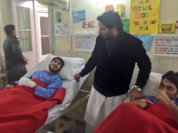 Shahid Afridi with injured students