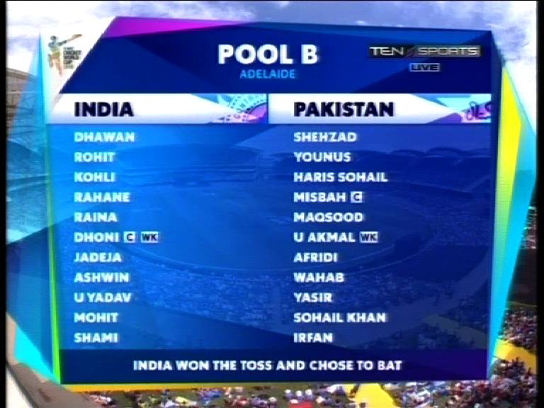 — S. (@SaudinAudi) February 15, 2015 15 overs: India 71/1, Wahab Riaz and Shahid Afridi bowling in tandem, Kohli and Dhawan on strike.