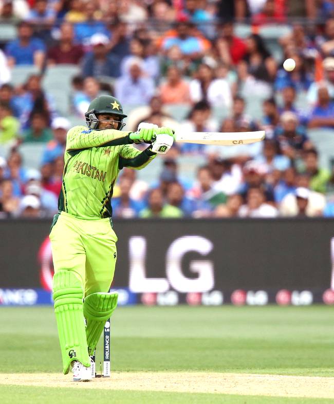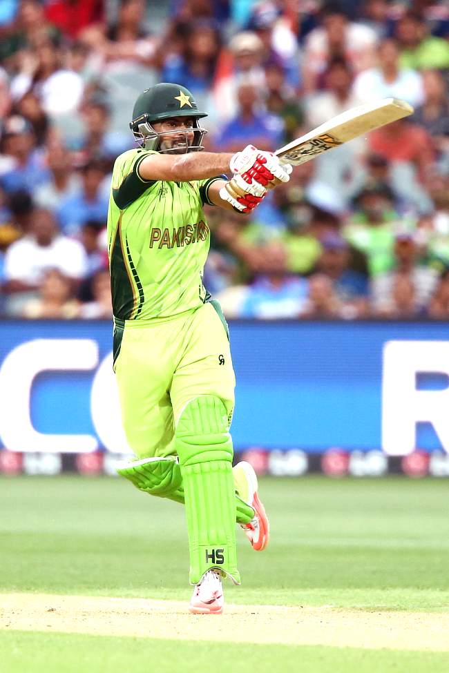 — #TemperMania (@msdhonie) February 15, 2015 15 overs: 68 runs, Ahmed Shehzad hits a boundary.
