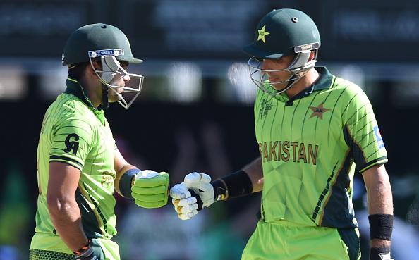 — Alt Cricket (@AltCricket) March 1, 2015 6 overs: Pakistan are 10 for 2 after 6 overs. Ahmed Shehzad and Nasir Jamshed both have left. Haris Sohail has middled one though and it got him four runs in the sixth over.
