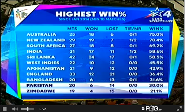 These first ten overs by Zimbabwe have been brilliant. They have made Pakistan fans lose whatever hope they had of making it to the knockout stages.