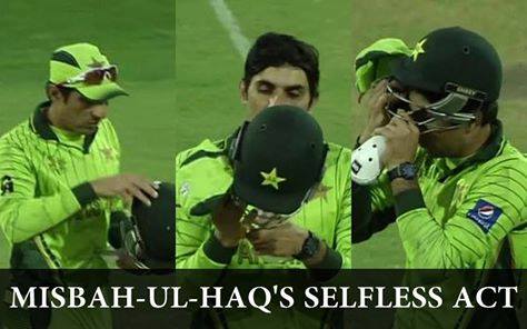 Talking of Misbah s captaincy again, Pakistan skipper showed how to lead from the front even on the last day of his career in ODI cricket. At one point in the game against Australia, when Shane Watson was on strike and Shahid Afridi had the ball in his hand, Misbah told Sohaib Maqsood to stand at short-leg. Scared of Watson s strong pull shots, Sohaib hesitated in taking the helmet. Immediately, Misbah told him to hand him the helmet and stay where he was. Misbah put the helmet on and the 41-year-old went to stand at short-leg himself. The act was widely appreciated by the fans and media.