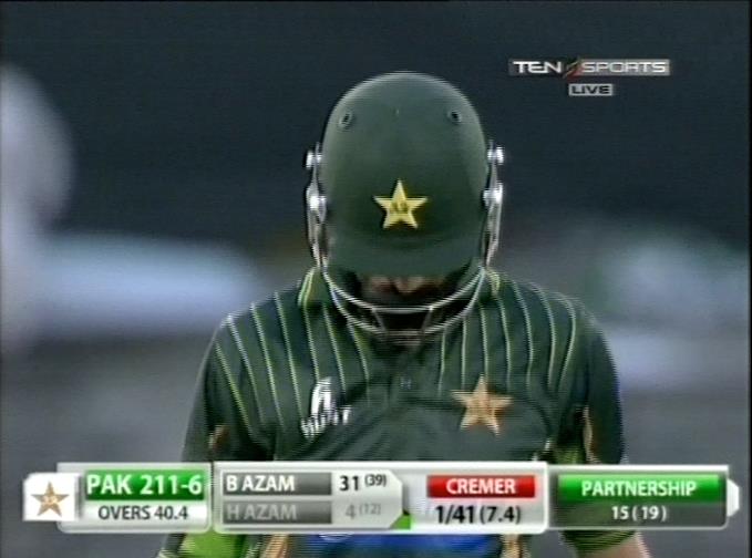 40.4: Hammad Azam gets out to Cremer.