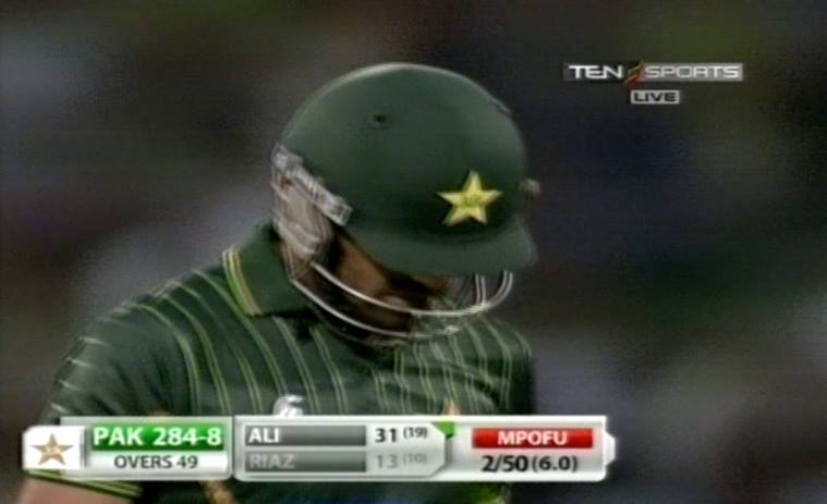 48.5: SIX! Wahab Riaz hits one into the stands. Victim is Mpofu.