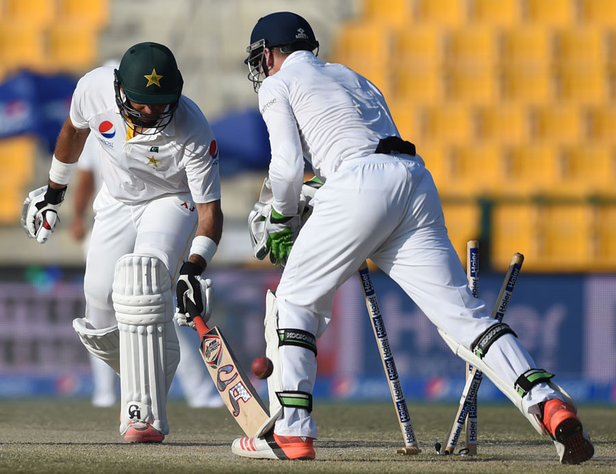 Pakistan had hoped Younis Khan (45) and Misbah would handle the situation at 47-3 after opener Mohammad Hafeez was run out for 34, failing to beat an excellent throw by Stokes from the covers while taking a sharp single.