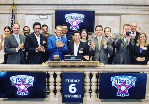 Sachin Tendulkar, Shane Warne, Matthew Hayden, Wasim Akram and Lance Klusener open New York stock