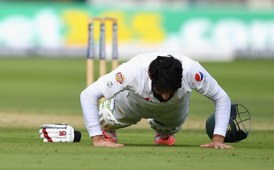 It looked as if Misbah was about to celebrate his achievement by prostrating himself on the turf in prayer.