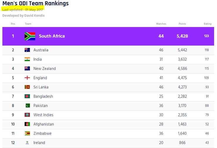 South Africa has maintained its spot as number one in ODIs while Australia and India are not far behind being at number two and three positions, respectively. Both Aussies and the blue shirts are separated by one-point gap.