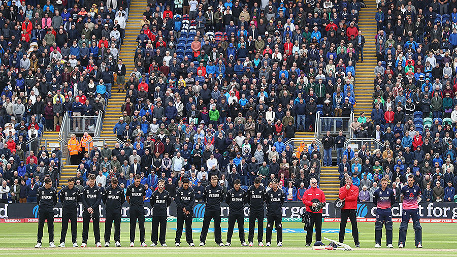 Meanwhile, the umpires after 6.4 overs halt the play to observe a national minute s silence for the victims of the London attack on Saturday.