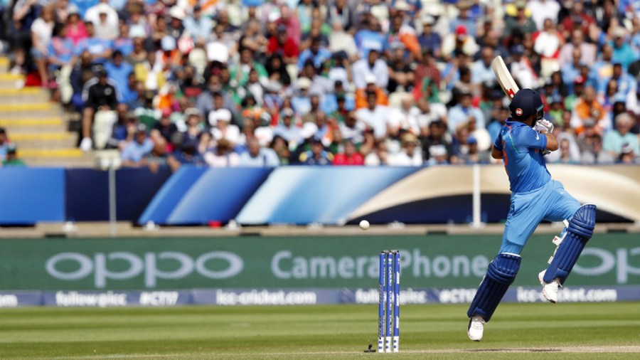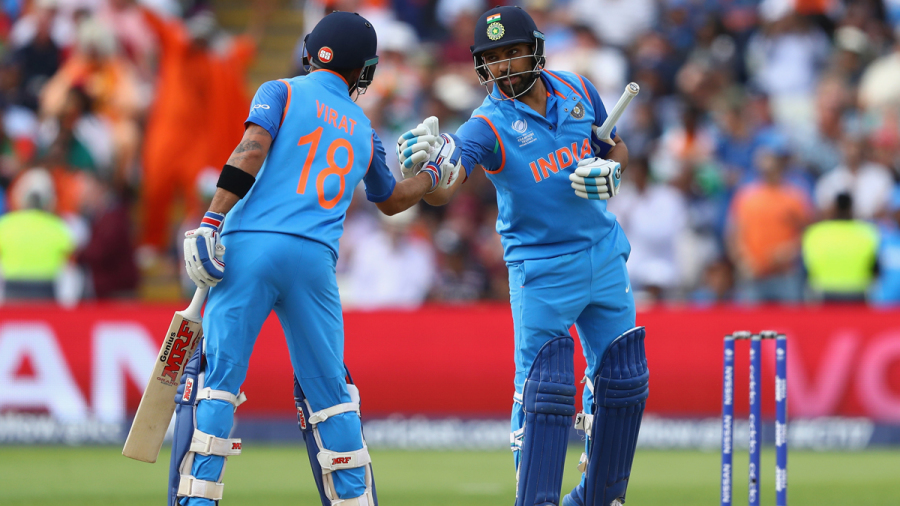India lost their first wicket in chasing down 265 in the second semi final.