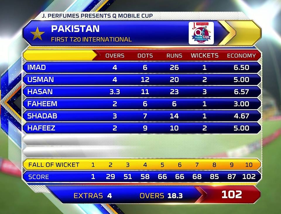 Pakistan seemed shaky in the first few overs as Faheem Ashraf was gone for 6 and Babar Azam followed him after scoring just one run. However, Shoaib Malik and Ahmed Shehzad steadied the things a bit before Shehzad also fell after scoring 22 runs off 32 balls. Mohammad Hafeez joined Malik in the middle after Shehzad and the two were meticulous to take the team over the line.
