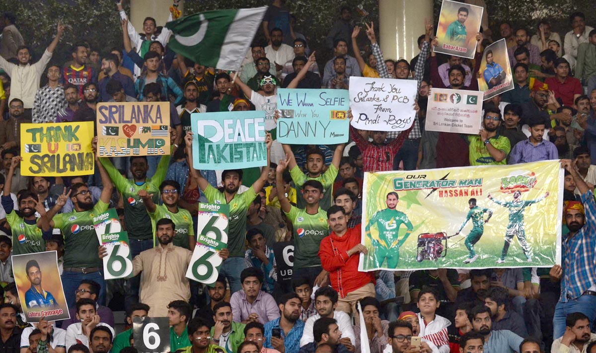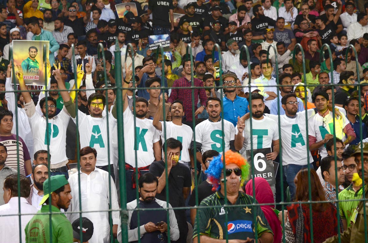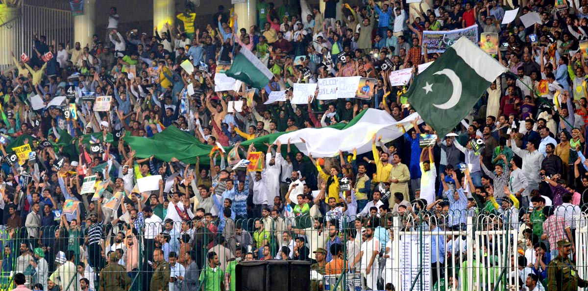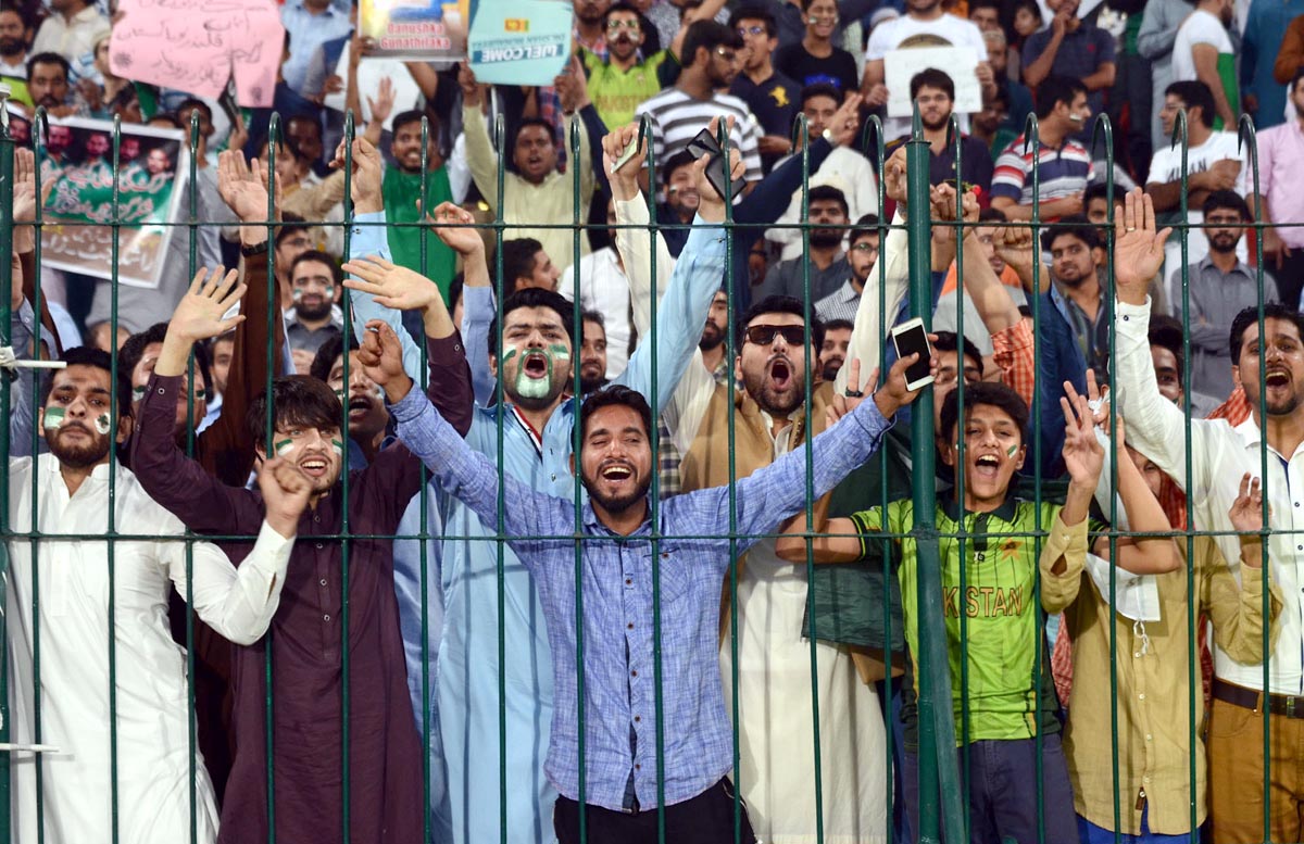 People cheer for Pakistani players during the third T20I against Sri Lanka in Lahore. Photo: OINN