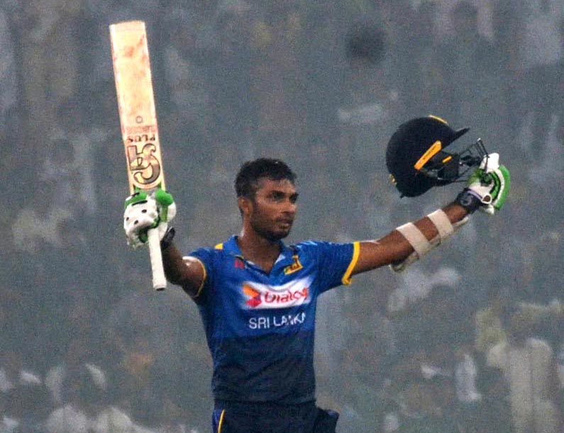 A gesture of Sri Lankan batsman Dasun Shanaka while performing against Pakistan at Gaddafi stadium. Photo: OINN
