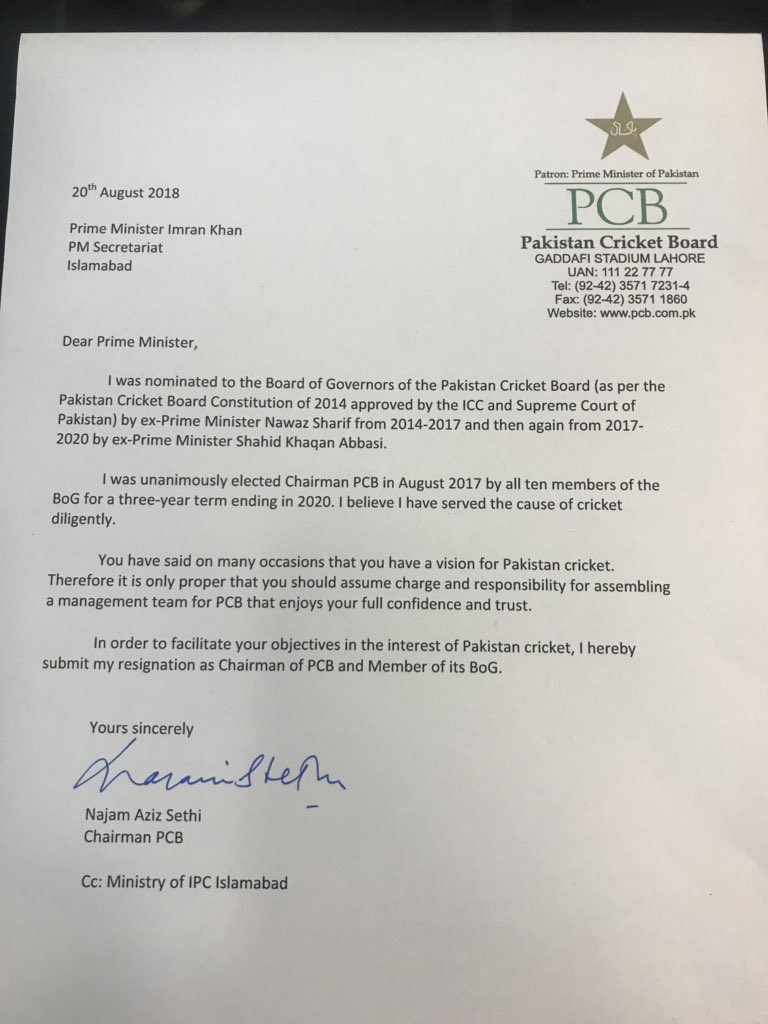 Chairman PCB Najam Sethi s resignation @najamsethi pic.twitter.com/Tz469QrMC5