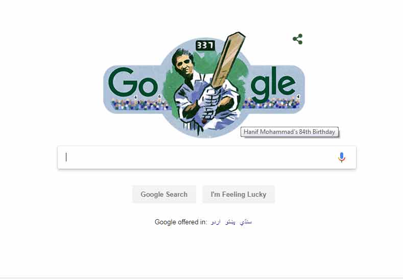 (Web Desk)-The international search engine Google has paid homage to Pakistan s legendary cricketing star Batsman Hanif Mohammad on his 84th birthday.