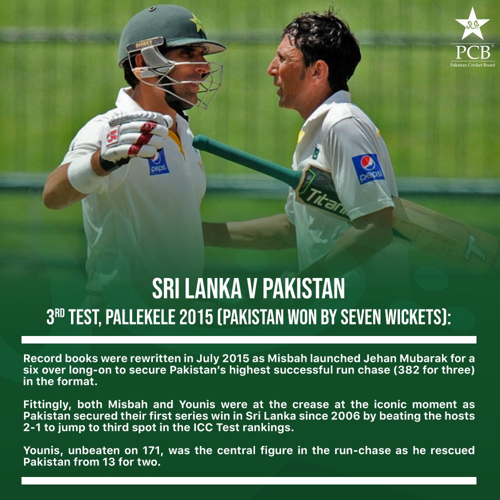 Fittingly, both Misbah and Younis were at the crease at the iconic moment as Pakistan secured their first series win in Sri Lanka since 2006 by beating the hosts 2-1 to jump to third spot in the ICC Test rankings.