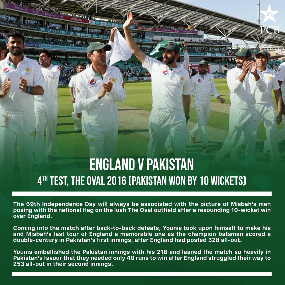 The 69th Independence Day will always be associated with the picture of Misbah’s men posing with the national flag on the lush The Oval outfield after a resounding 10-wicket win over England.
