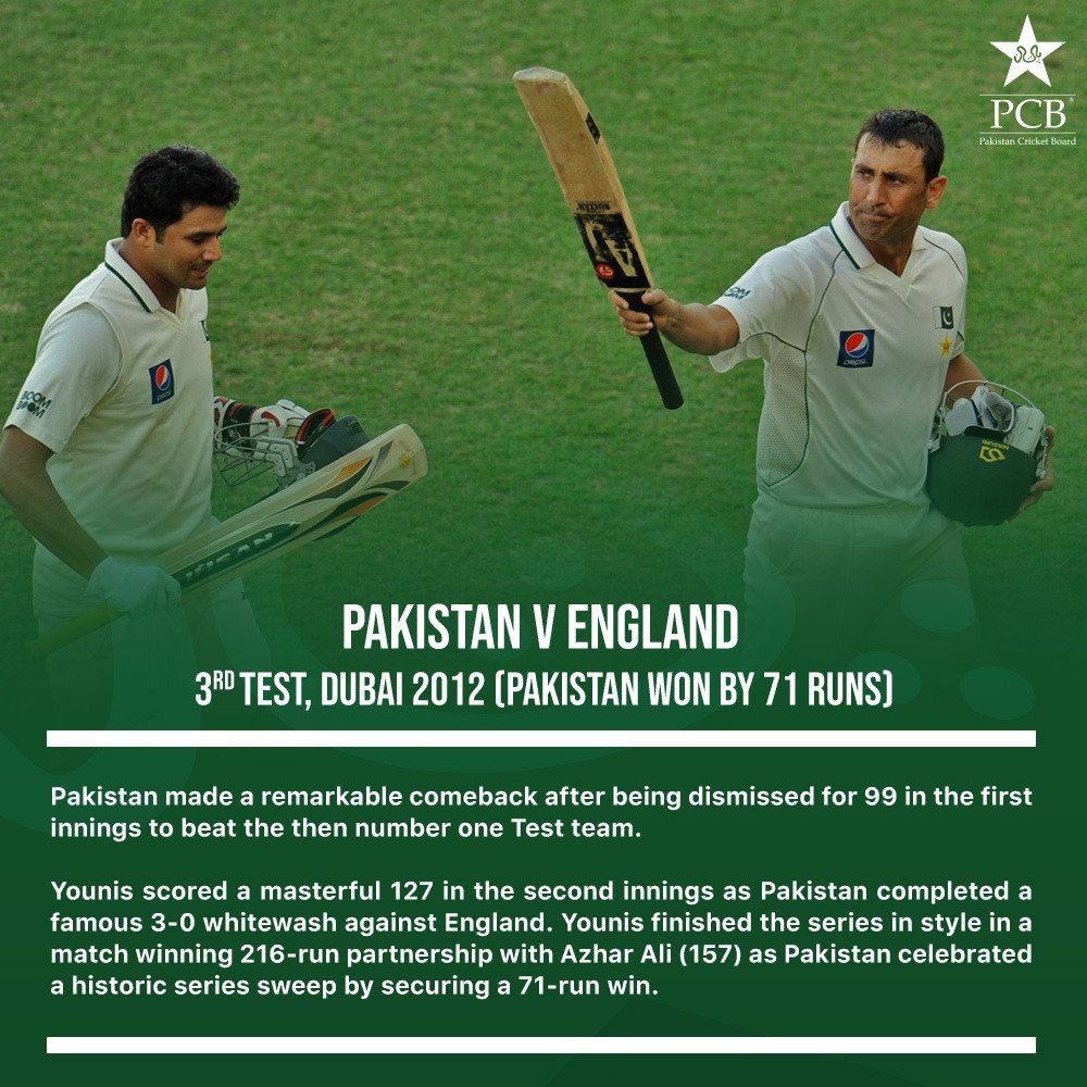 Younis scored a masterful 127 in the second innings, while Misbah grafted for useful 31 as Pakistan completed a famous 3-0 whitewash against England, who were then the number-one ranked Test side in the world.