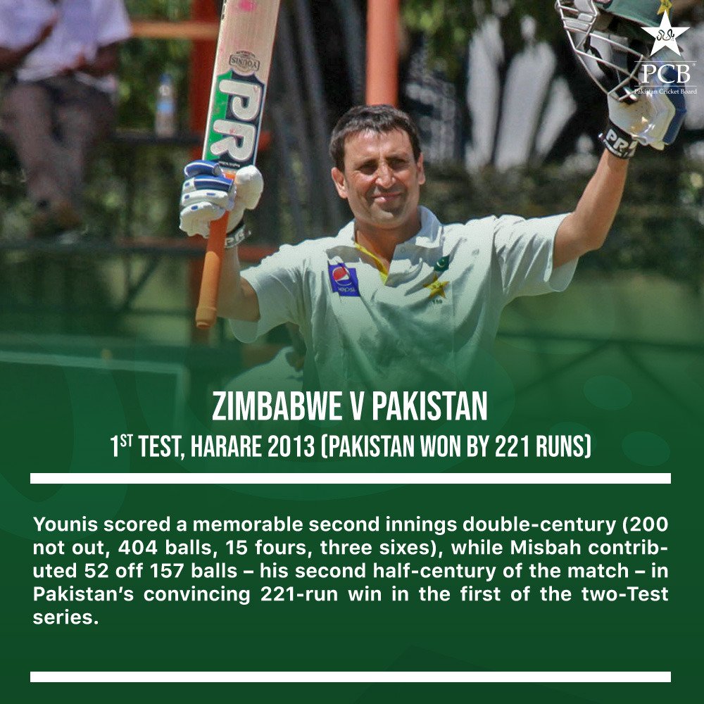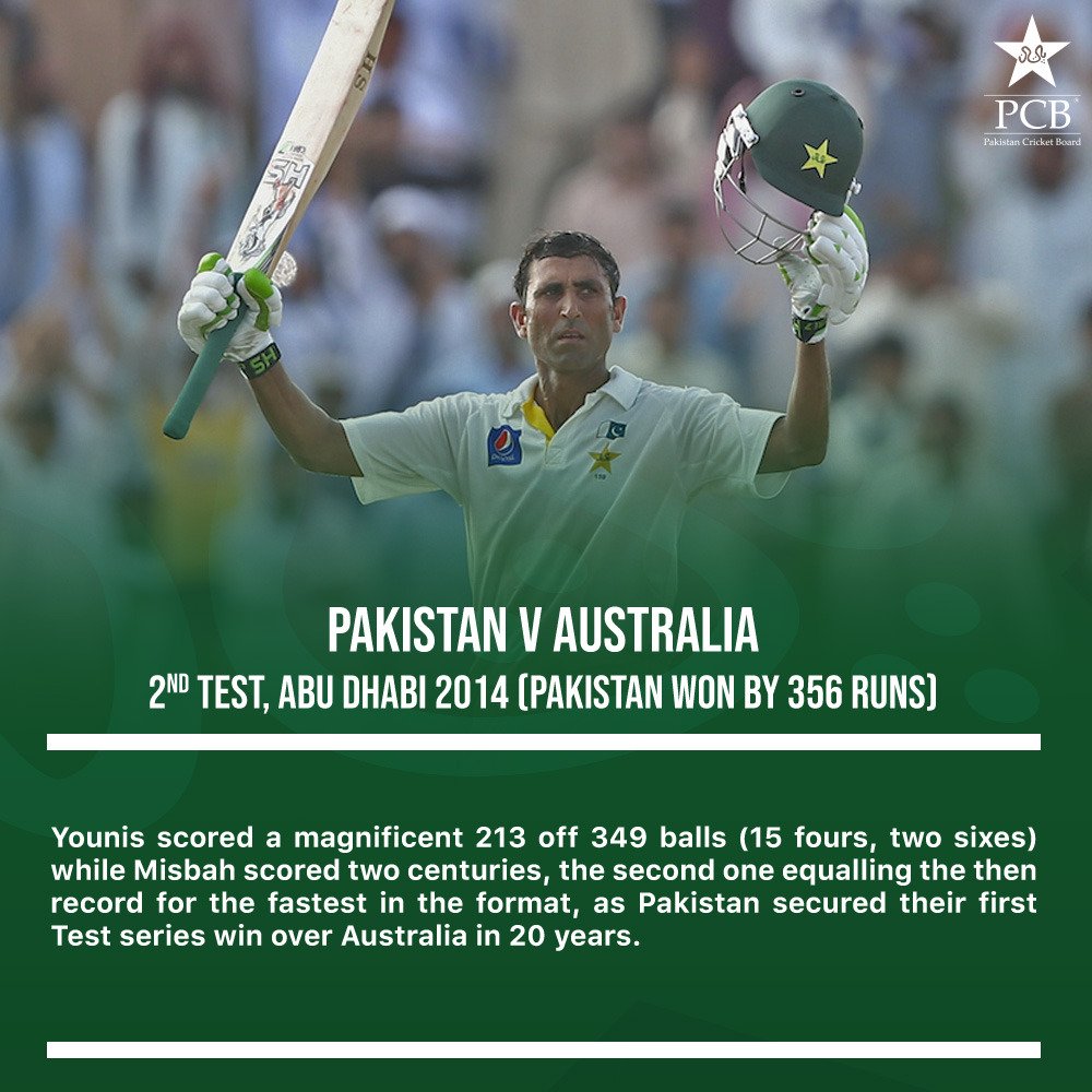 Younis scored a magnificent 213 off 349 balls (15 fours, two sixes) while Misbah scored two centuries, the second one equalling the then record for the fastest in the format.