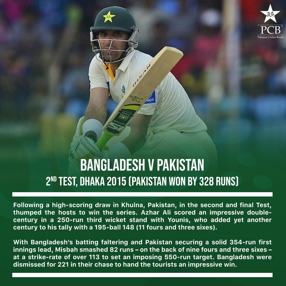 tan securing a solid 354-run first innings lead, Misbah smashed 82 runs – on the back of nine fours and three sixes – at a strike-rate of over 113 to set an imposing 550-run target. Bangladesh were dismissed for 221 in their chase to hand the tourists an impressive win.