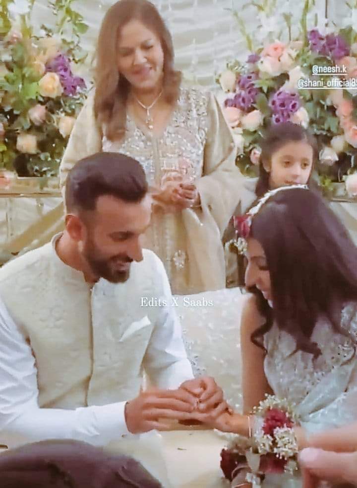 Pictures and videos of the ring exchanging ceremony of Pakistan cricketer with wife-to-be Nische Khan have gone viral on social media.